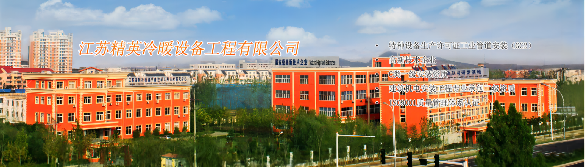 江蘇精英冷暖設備工程有限公司位于江蘇省徐州高新技術產業(yè)開發(fā)區(qū)第二工業(yè)園昆侖路14-2號,為高新技術企業(yè),公司擁有ISO9001質量管理體系認證、ISO14001環(huán)境管理體系認證、ISO45001職業(yè)健康安全管理體系認證、工業(yè)管道安裝(特種設備安裝、修理、改造)GC2資質、建筑機電安裝工程專業(yè)承包貳級資質、安全生產許可證、C類I級安裝資質、農機補貼定點企業(yè)及制冷設備國家標準《GB/T18430.2-2008》、《藥品冷鏈物流運作規(guī)范》、《冷鏈物流分類與基本要求》的起草單位等資質。